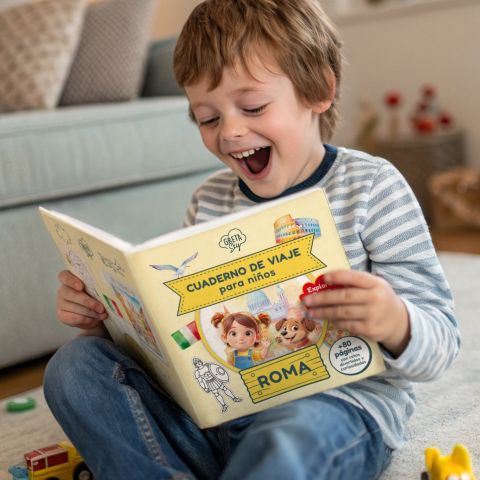 Haz que su viaje también sea especial con el cuaderno de viaje de Greta Sky: un cuaderno de actividades para niños y niñas de 4 a 8 años, con juegos, retos y curiosidades para descubrir Roma de forma divertida.
